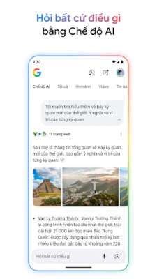 Vượt xa chức năng tìm kiếm cơ bản, ứng dụng Google là cổng thông tin cá nhân hóa của bạn. Dù bạn muốn khám phá những nhà hàng mới lạ gần kề, cập nhật lịch thi đấu thể thao trực tiếp, xem lịch chiếu phim mới nhất kèm đánh giá chuyên sâu, hay theo dõi diễn biến thị trường chứng khoán, Google đều mang đến thông tin chính xác và kịp thời. Bắt đầu ngày mới với bản tin thời tiết và tin tức nóng hổi, nhận thông báo về những bộ phim yêu thích, sự kiện bạn quan tâm, hoặc các thay đổi quan trọng liên quan đến sở thích cá nhân. Với Google, bạn luôn được kết nối với những gì quan trọng nhất.