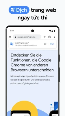 Khởi đầu hành trình khám phá thế giới số với Chrome, nơi mọi điều bạn tìm kiếm đều trở nên dễ dàng và thông minh hơn. Tích hợp sâu rộng những công nghệ đột phá từ Google, Chrome mang đến trải nghiệm duyệt web không chỉ nhanh chóng mà còn đầy đủ tiện ích. Dù bạn muốn tìm kiếm thông tin tức thì qua giọng nói hay văn bản, khám phá thế giới xung quanh bằng cách quét ảnh với Google Ống kính, hay vượt qua rào cản ngôn ngữ bằng cách dịch toàn bộ trang web sang hơn 130 thứ tiếng chỉ với một chạm, Chrome luôn là người bạn đồng hành đáng tin cậy, giúp bạn tiếp cận tri thức và thông tin một cách liền mạch.