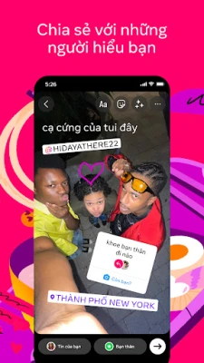 Thắt chặt tình bạn bằng cách chia sẻ những khoảnh khắc giản đơn, ý nghĩa. Ứng dụng này giúp bạn dễ dàng lan tỏa niềm vui, lưu giữ kỷ niệm đẹp với bạn bè. Đăng tải trực tiếp lên Instagram, làm cho mỗi khoảnh khắc trở nên đặc biệt và thắt chặt hơn nữa mối quan hệ.