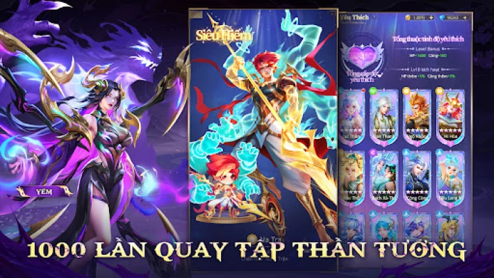 Phục Yêu Sư mở ra một thế giới phong phú với hàng trăm anh hùng đợi bạn chiêu mộ. Bắt đầu cuộc phiêu lưu của bạn với 1000 lượt rút miễn phí, đảm bảo đội hình huyền thoại sẽ nhanh chóng hình thành. Từ Khẩn Na La với skin độc đáo, đến những danh tướng lừng lẫy như Nữ Oa, Hằng Nga và Thanh Bạch Xà, tất cả đều sẵn sàng phục vụ bạn. Tham gia vào những trận đấu thẻ bài phong cách MOBA đầy kịch tính, nơi 5 giây quyết định thắng bại. Tự do sắp xếp 5 vị trí chiến đấu, tung ra những chiêu thức quyết định cục diện và cảm nhận đỉnh cao của trí tuệ chiến thuật.
